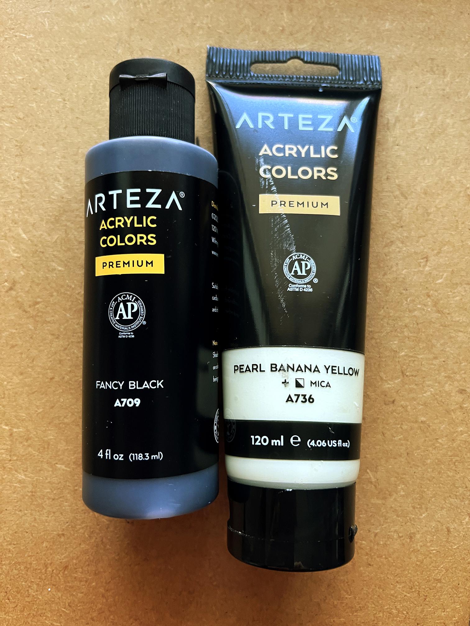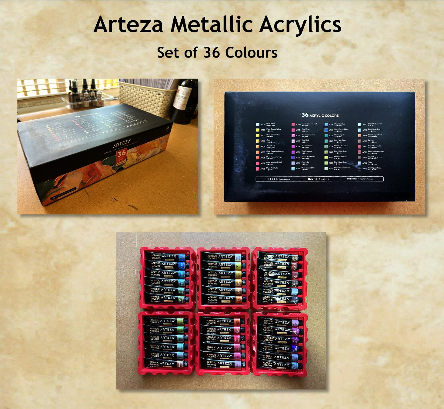 As you will have gathered, I am being inspired (heavily influenced?) by Robyn McClendon at the moment! A while back I saw a video where she was singing the praises of some new Arteza iridescent and metallic paints. I bought the boxed set of small tubes of the metallics: