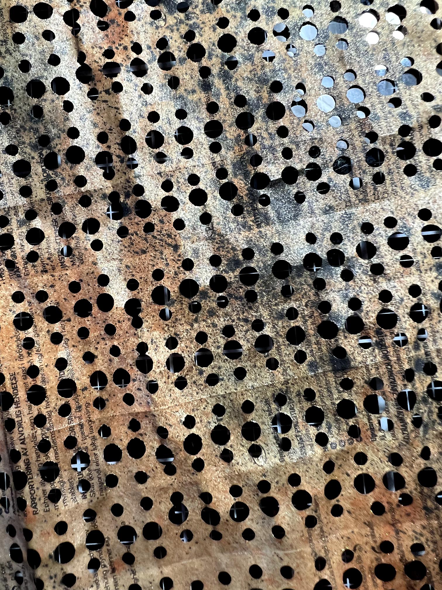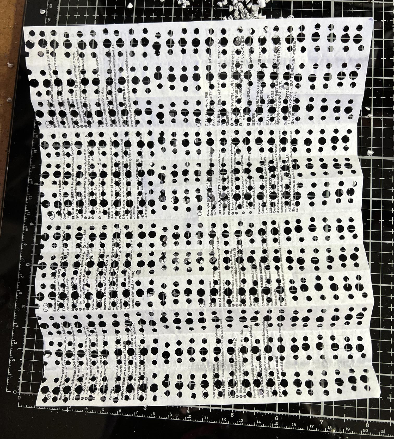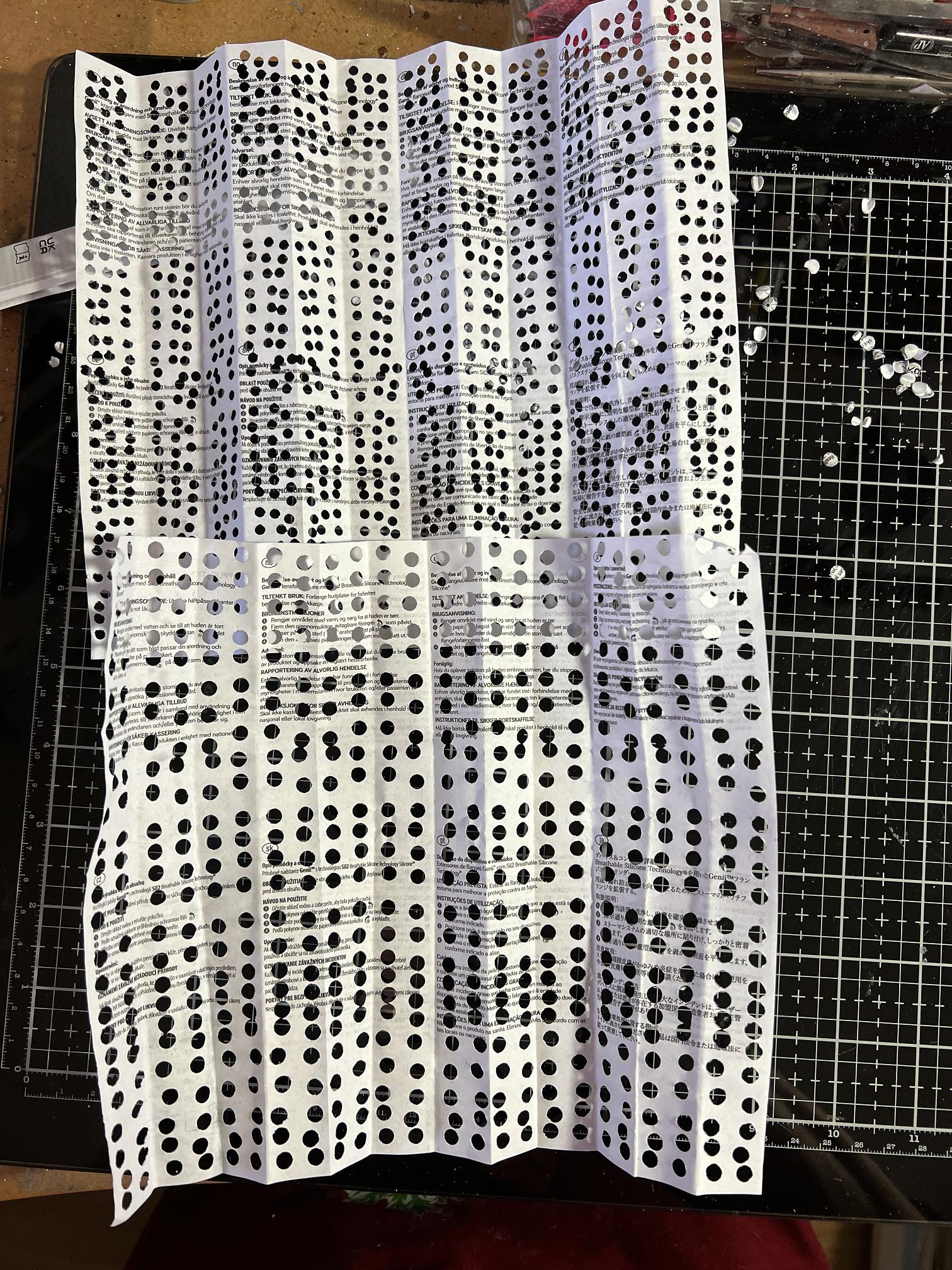 A detail shot of the pierced paper. I like how the pattern is regular, but also not regular!