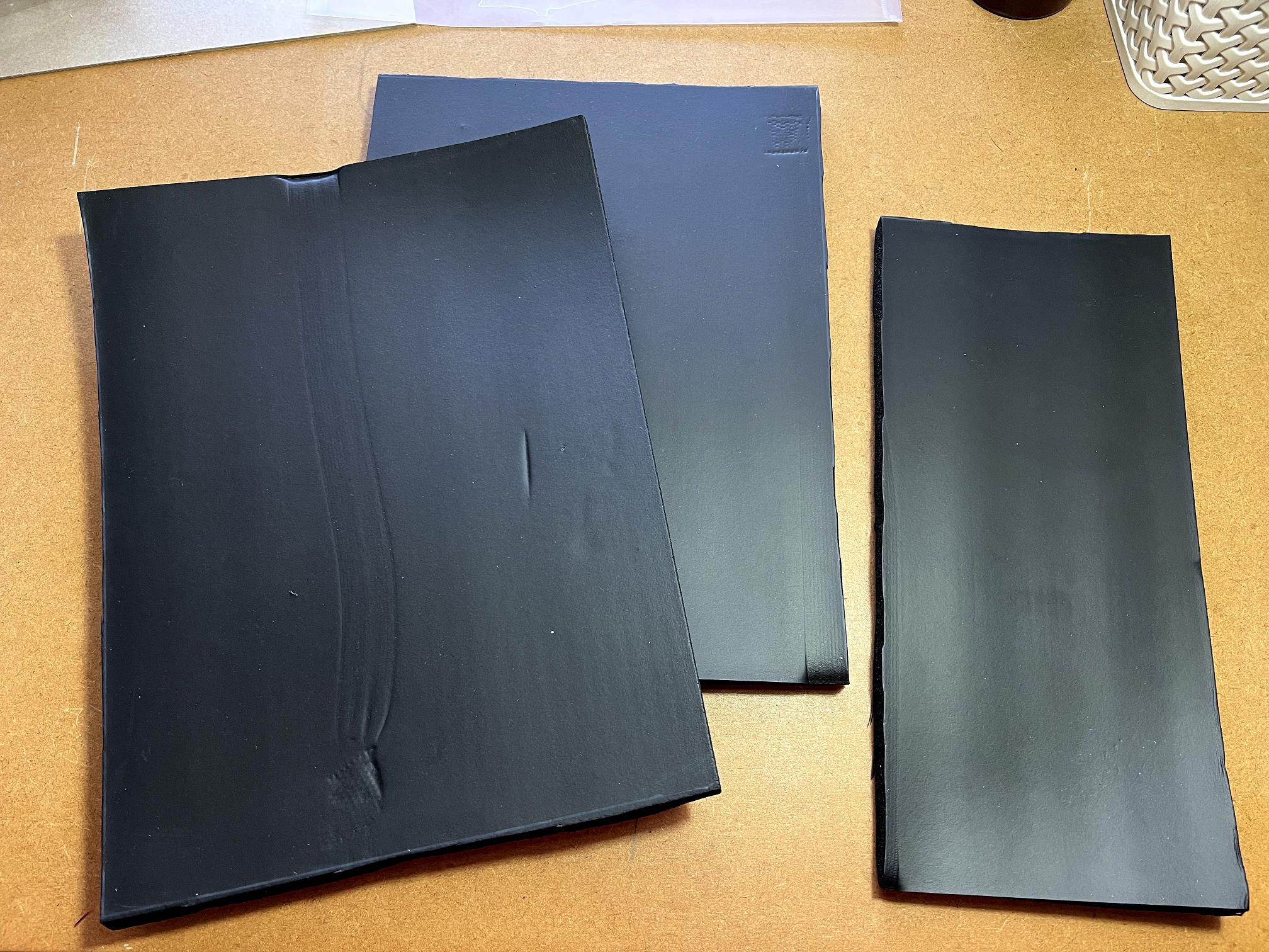 Watching YouTube the other day I came across a printer who mentioned that she’d got a blog post about using a yoga mat as a gel plate – something I want to follow up on, not least because I could do with a second plate and if this works, it will save me investing in another real one! This afternoon I cut two pieces 12 x 10 inches from the mat, with a smaller piece remaining.