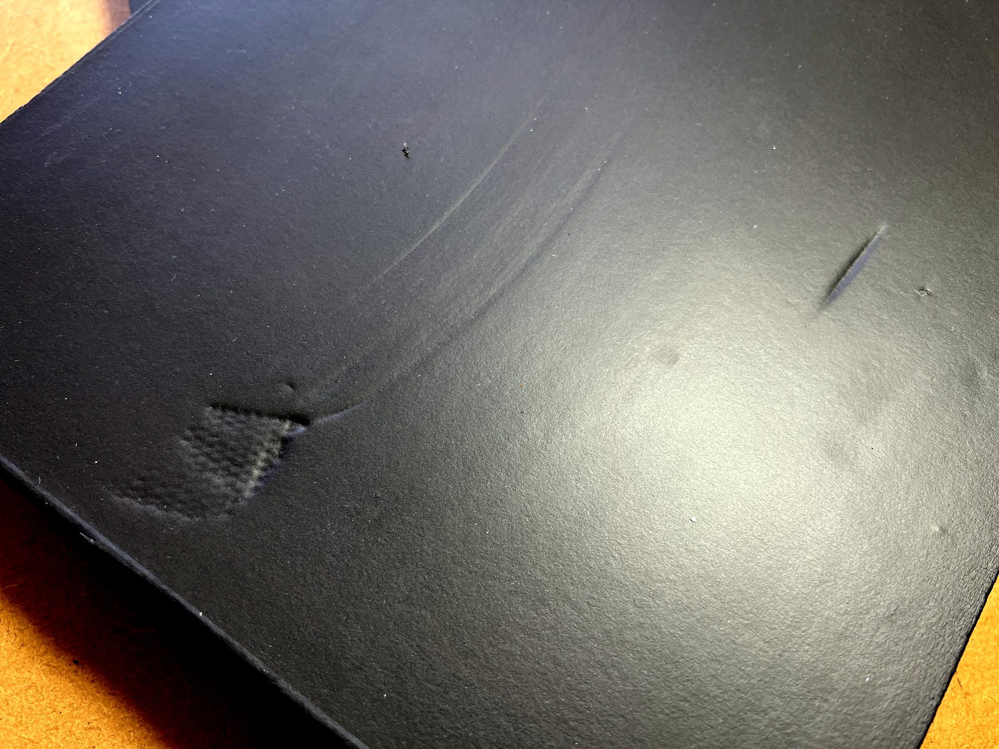Unfortunately there are indentations on these pieces, being towards the end of the mat, where the elastic carrying strap has pressed into the foam. I am hoping these indentations will disappear in time. I tried to remove them by warming them gently with my heat tool but it had no effect.