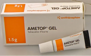 I was given a tiny tube of Ametop (tetracaine), a local anaesthetic gel, which has to be kept in the fridge.