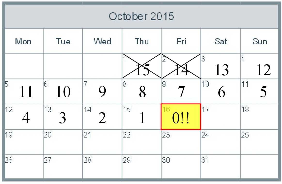 We are now into October! We are now into serious countdown time and I have accordingly reduced the calendar to one month! A fortnight to go till my final treatment.